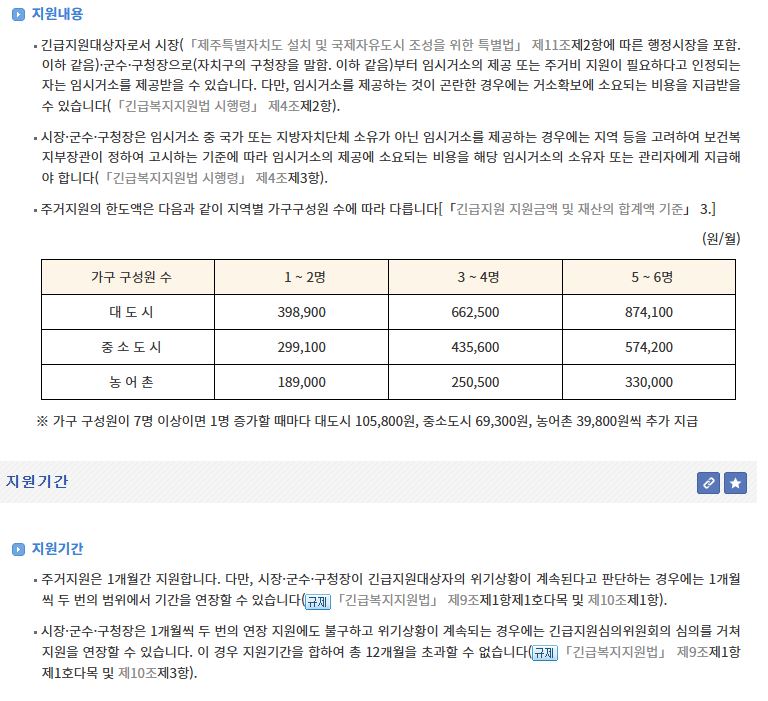지원금액의 경우 지원 항목에 따라 달라지는데요. 생계, 의료, 주거, 사회복지시설, 교육, 난방 등 항목에 맞는 부분에 대해서 신청해주시면 됩니다. 가장 많이 찾는 생계지원금에 관한 내용은 아래의 표를 통해서 확인하시면서 생계 외 다른 항목이 궁금하시다면 아래 링크를 통한 긴급복지 생계지원금 항목들을 확인하시면 되겠습니다.